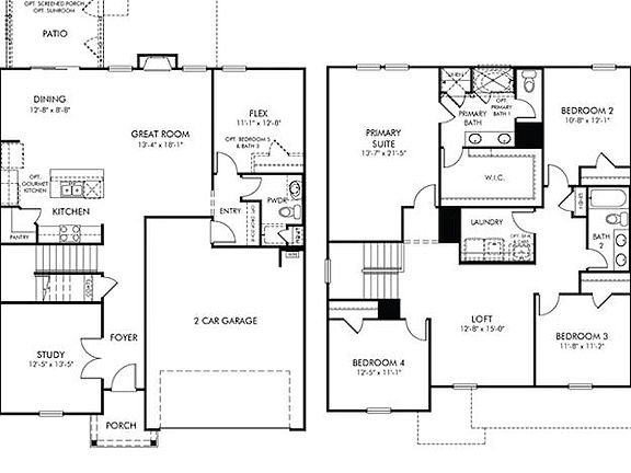 Second floor has the master suite, 3 additional bedrooms and a loft. The impressive primary suite boasts dual sinks and a large walk-in closet.