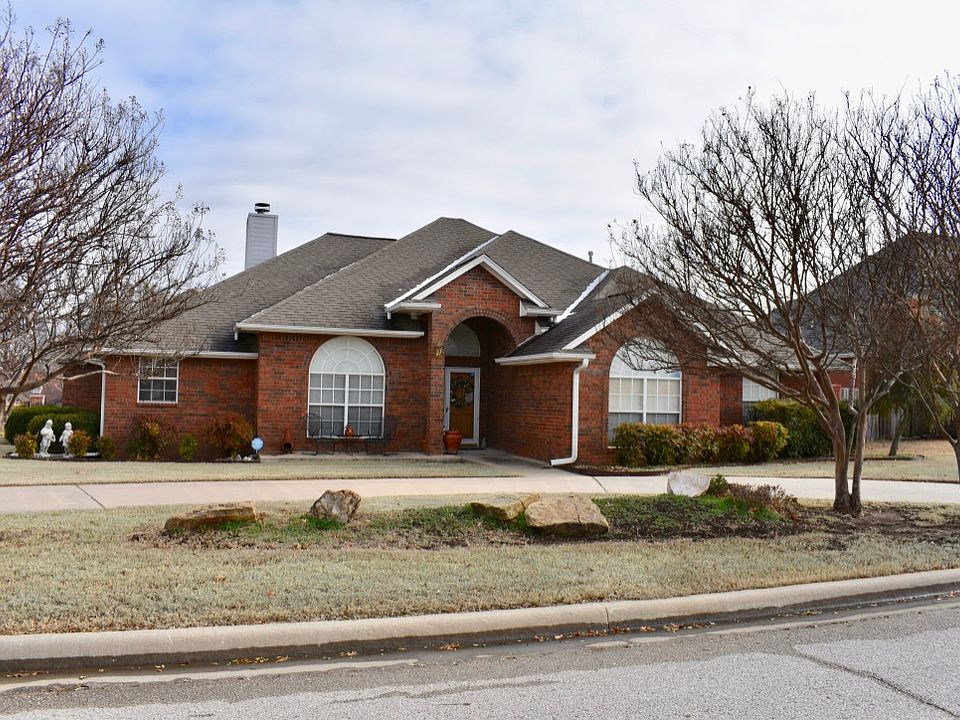 This fabulous single story custom home built in 2001 in Country Club Estates has a professionally landscaped fenced yard with a sprinkler system, circle drive, and storm cellar. Beautiful home with granite countertops, tall ceilings, crown molding, built-in bookcases and tons of storage. Updates in 2017 include hardwood floors, stainless steel appliances, new heat and air, and numerous others.