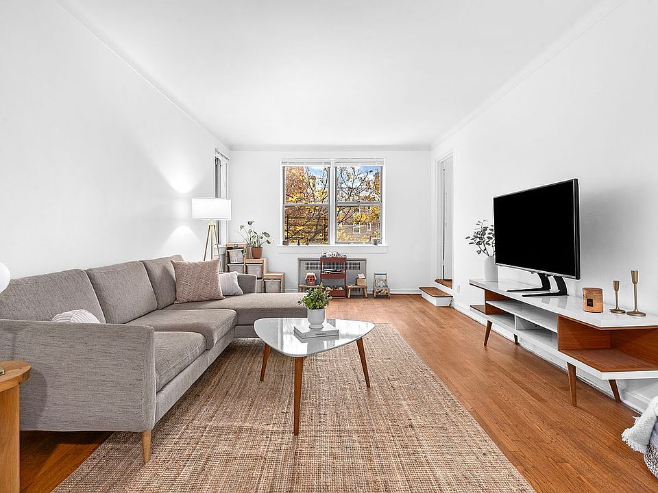 From the moment you walk in through the gracious foyer, you’re immediately greeted by an apartment willed with warmth and charm . Apt 518 features wonderful pre-war details, such as original hardwood floors and a spacious sunken living room. Perched on the 5th floor, this apartment gets wonderful natural light through windows that frame open sky and treetop views.