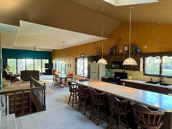 Here's your change to own 1.5 acres right in town with plenty of room to spread out - both inside and out! This spacious home offers over 3,000 square feet of living space and a large 2 car attached garage. With 3 bedrooms and 1.75 bathrooms, the layout combines traditional comfort with open-concept living, creating a warm and versatile home for everyday life and entertaining. The main level features large windows that frame beautiful views of the lush backyard and fill the home with natural light. Step out onto the screened-in deck just off the living room, a perfect place to unwind and enjoy the peaceful surroundings. Downstairs, the fun continues with a fantastic rec room complete with a bar area, a putt-putt golf course, and space for your pool table or game nights with friends. There is even room to add more bedroom, if desired.