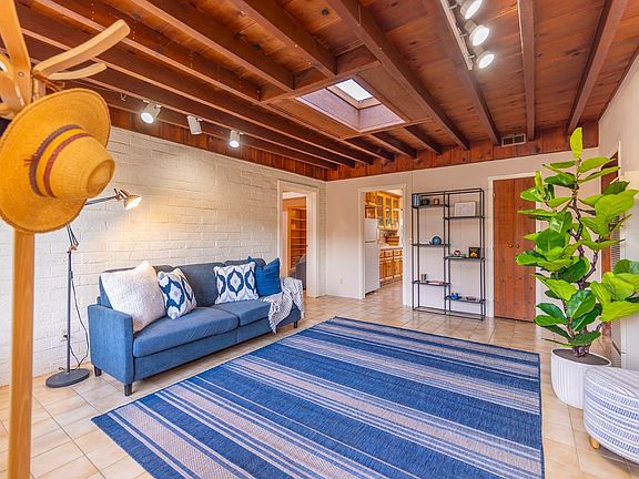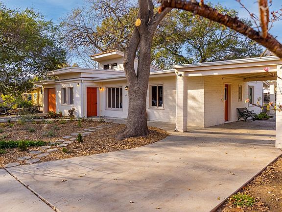 Reduced! This Mid-Century Modern sits at the end of a quiet cul de sac in the vibrant Ojai village. Walk or ride your bike everywhere from your comfortable 1807 sq. ft. 3BR/2BA home with huge great room w/fireplace. The spacious primary suite features its own mod fireplace to set a romantic mood. You'll love the light pouring in the skylights at the top of high vaulted ceilings, the generous use of wood throughout the house, the efficient galley kitchen and the large windows that wrap around the dining area. There's even a yoga room/art studio! Stunning mountain views invite you to your fenced backyard with garden beds. And the pergola offers just the right amount of shade for your barbecue parties. It's easy walking distance to Sarzotti Park and near the Soule Park Golf Course as well as plenty of restaurants, stores, and more. Considerable work has been done on this home recently to bring it back to the true mid-century vibe. It's unusual to find a home this large in the village at this price. So come and take a look for yourself!