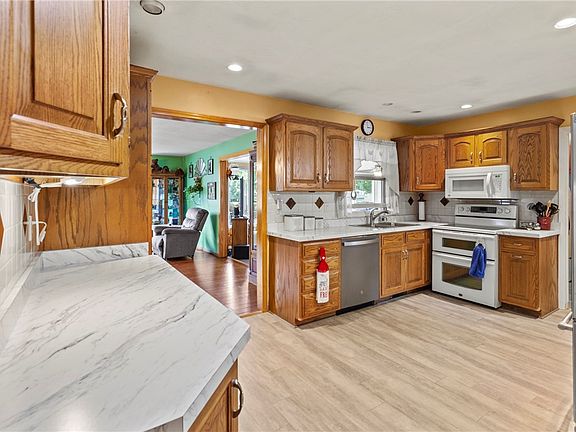 Charming ranch with modern updates! This 2 bedroom home has 2 full remodeled baths and boasts over 1,600 sq. ft. of thoughtfully designed living space, perfect for both relaxation and entertainment. The beautiful kitchen features stainless refrigerator and dishwasher, the range has double ovens, new countertops and easy access to the formal dining room and spacious 20 x 20 family room with hardwood floors, enjoy your morning coffee or relaxing evenings in the heated and cooled sunroom. The office/bonus room could easily be used for playroom, craft room or extra guest space. The 1 car attached garage has a retractable screen great for extra entertaining space or enjoying hobbies on rainy days. Outside features, fenced back yard, vinyl deck, and handy shed offering great space for gardening tools & extra storage. Updates included, hvac system and duct work in 2023, replacement windows throughout, new flooring in foyer, kitchen, dining, both baths and sunroom.