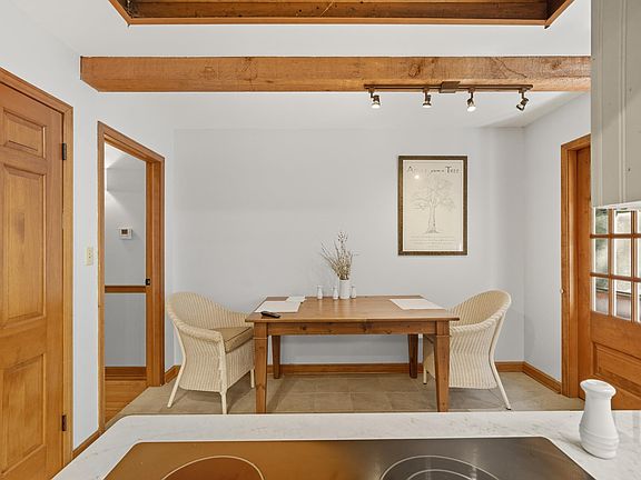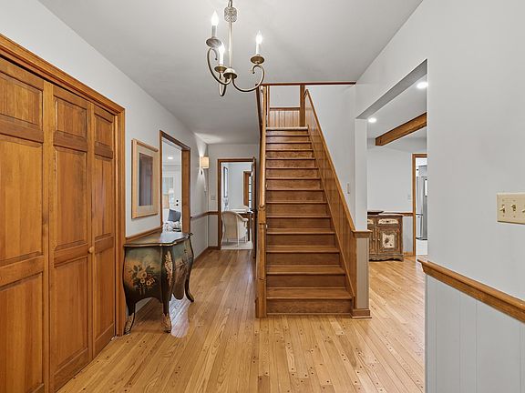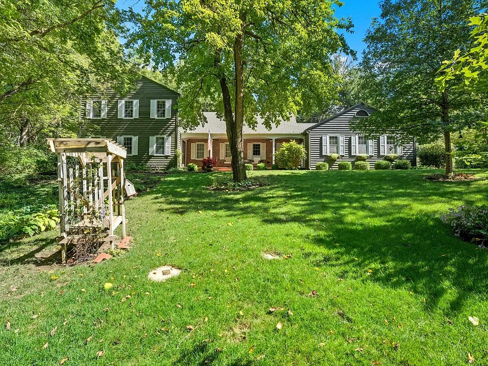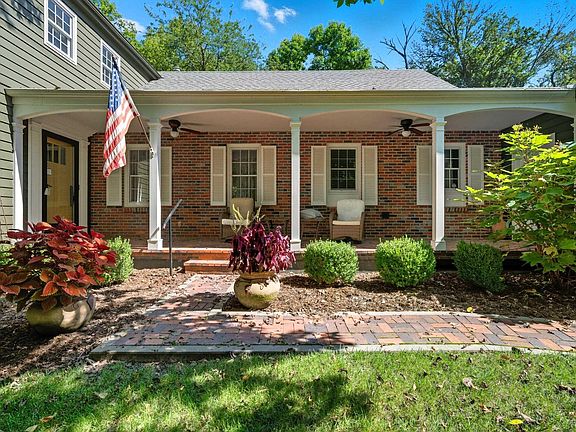 Tucked into a lush, tree-lined setting, backed up to the Manhattan Country Club golf course, this home blends timeless charm with comfortable living. Sunlight streams through oversized windows onto warm wood floors and beamed ceilings, while brick accents add a touch of character throughout. The kitchen offers plenty of workspace and storage with classic cabinetry, and multiple living areas create spaces to gather, relax, or entertain. Step out to the screened porch for morning coffee, or host friends on the patio overlooking the landscaped yard. Upstairs, spacious bedrooms and updated baths provide everyday comfort, and a main-level lounge with wet bar makes a perfect retreat. With its inviting flow indoors and out, this home offers both privacy and connection in a setting that feels like a retreat.