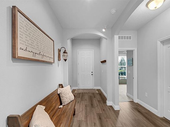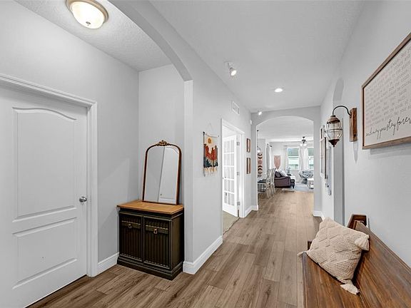 Welcome to this spacious 3-bedroom, 2-bath home with office offering 2,022 sq. ft. of thoughtfully designed living space on a generous lot. The split floor plan ensures privacy, while the open-concept layout creates an inviting flow perfect for both daily living and entertaining. The dedicated office with French doors provides an ideal work-from-home setup, and each bedroom plus the office features ceiling fans for year-round comfort. Upgraded luxury vinyl plank flooring runs throughout the common areas and kitchen, paired with a brand-new dishwasher (2025) for modern convenience. The primary suite is complete with dual sinks and his-and-hers medicine cabinets. Smart home features include smart light switches, smart recessed lighting in the garage, video surveillance system, and smart landscape lighting. Step outside to enjoy the backyard retreat with a large above-ground pool and irrigated landscaping. Car enthusiasts and entertainers will love the 3-car garage, fully equipped with a 200" projector screen, smart recessed lighting, and dual ceiling fans—a true multi-purpose space ready for movie nights or hobbies. Additionally, the exterior of the home has recently been painted with premium paint (2025). Ideally located just minutes from grocery, shopping, restaurants, and a major hospital, this home seamlessly combines modern convenience, comfort, and lifestyle.