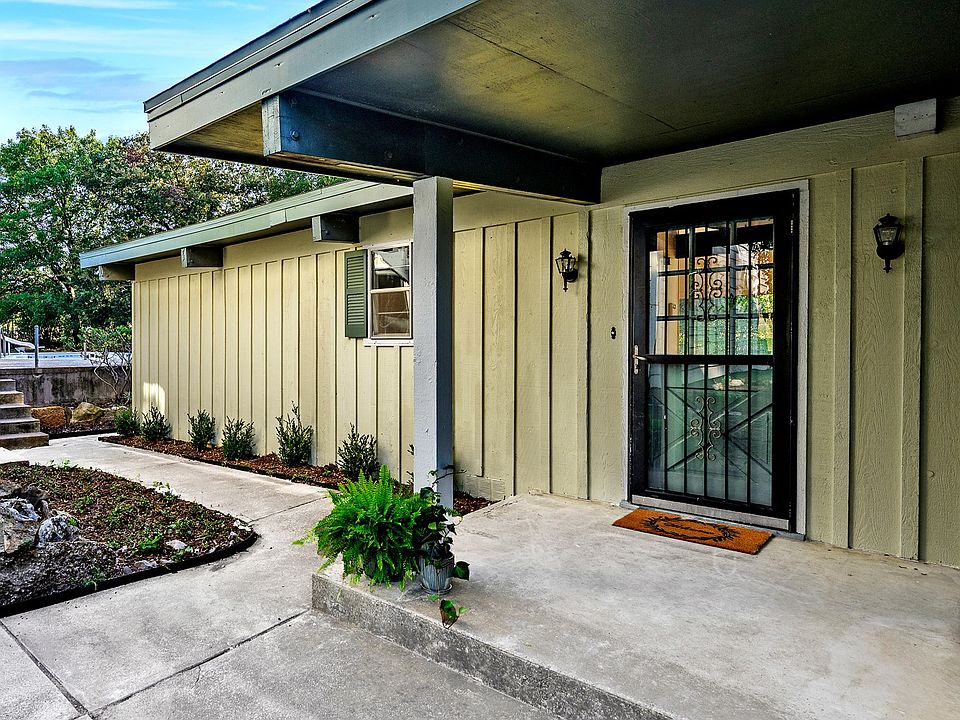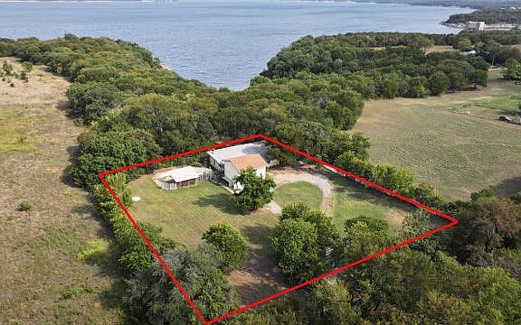 This might be what you've been looking for! Only minutes from Grandpappy Point Resort and Marina, this newly renovated home on over an acre on beautiful Lake Texoma. Built in 1966, the home has a huge front and side yard and backs up to Corps of Engineer land that sits between the house and the lake. An adventurous walk on an old trail will lead you straight to a view of the water and the only accessible cove, with a sandy beach, on the east side of Hanna Drive. The 2-bedroom, 2 bath home also has a detached garage-workshop and an upstairs apartment with a living area and 1 bedroom and a bath. This lake gem could be used for your permanent hideaway , an Airbnb investment, or your family's weekend and summer vacation home. The spacious open concept living area and kitchen provide a spectacular view through an entire wall of large windows. Enjoy the serene setting on the private deck that runs across the length of the house overlooking a meadow and large trees. You can hear wild turkey, see an occasional deer, and other unique birds in the wooded USA land. The home has a working well that could be used for irrigation, however the home itself is connected to the local water supply service. Additionally, the property offers 3 carports and a shed for extra cars, boats, or other toys. This tranquil piece of property has a unique charm and with a little vision, could have unlimited possibilities. The property does have a large in-ground pool that would need to be completely renovated or filled in. Schedule a private showing to see all that this property has to offer!