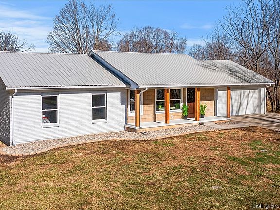 Our Seller’s have hit another home run with this newly designed and updated ranch style home on 1.32 acres in Corydon, Indiana. With an open floor plan, 4 bedrooms, 2 bathrooms and a finished basement, this home offers plenty of room to fit a variety of needs. Upgrades include: reconfiguration of the living space, hardwood floors, new doors throughout, countertops and fixtures, LED lighting, exterior soffit lighting, 72” dual head walk-in shower, freestanding designer tub, 6x12 walk-in closet in primary bedroom, new drywall & paint, epoxy painted basement floor and garage, spray foam and encapsulated crawl space with forced air, dual fuel HVAC with 1,000 gallons of propane; LP tank is leased (yearly fee, paid until July 2024) upgraded electrical & plumbing and a 30 year metal roof. Their design choices are current and picture perfect! In addition to the above, a large barn completes this sweet country home!
