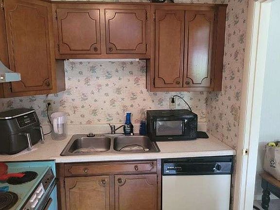 One bedroom garden-style apartment at Oakwood Arms Apartments. This apartment unit has a sidewalk leading up to a private entrance on the first floor. The unit features one bedroom, one bathroom, kitchen and dining area, and a nice sized living room. There is a stack washer/dryer in the unit. Kitchen appliances (refrigerator, electric range) are provided. There are sliding doors at the back of the apartment leading to a concrete slab back patio that faces an open courtyard. One off-street parking space is provided for this unit.