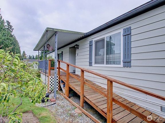 Located in a peaceful and well-maintained 55+ community in Sedro-Woolley. This spacious manufactured home offers 2 bedrooms and 2 bathrooms. The primary bedroom is exceptionally large and features a generous closet and private en-suite bathroom. The second bedroom is also a good size, perfect for guests or a home office. A cozy family room and dining area just off the kitchen creates a comfortable and functional living space. Outside is a well built large deck for entertaining or relaxing. Storage shed is located at the back of the property, providing extra space for tools or seasonal items. Home is equipped with an efficient heating and cooling system, ensuring comfort throughout the year