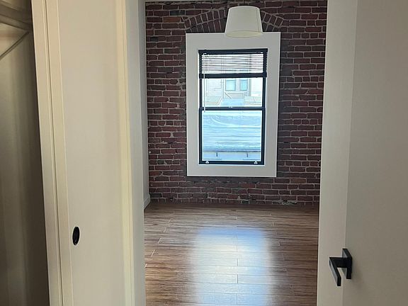 Modern bathroomsExposed brickStainless steel applianceGranite counter topsHardwood floorModern kitchen