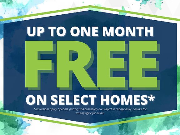 - Special offer! Get up to One Month Free on select homes! *Limited time offer. Restrictions apply. Specials, pricing and availability subject to change daily. Contact the leasing office for details.
