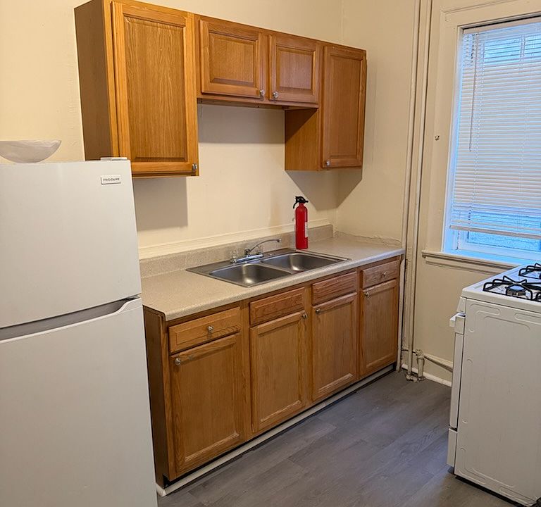 1 bed room , 1 bath. Large rooms. Tenant pays electric for lights. Off street parking included with rent