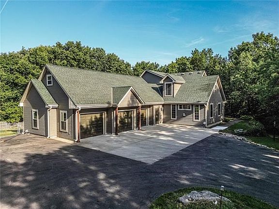 Looking for privacy? Custom built 1.5 story on 4.7 acres. This house has a wrap-around porch that stares into the deep woods, a great spot for grilling and entertaining. There is a large 3 car garage and one with a private bay for custom car or workshop. The full walk-out finished basement has a 5th non-conforming bedroom, full bath and hobby room or storage room. Main floor Master bedroom has large walk-in closet and whirlpool tub. A grand vaulted ceiling in the living room with wood burning fireplace that comes off the beautiful county kitchen. The home has an eat-in and formal dining room. HUGE second living room addition with gas fireplace, wet-bar, extra pantry. This house is very big, there is a loft and three more bedrooms upstairs one connects to the huge unfinished attic with garage access as well, great for storage and managed by the 3 zone heating and cooling, 2 hot water heaters. There's a separate detached garage in the backyard for all your lawn equipment. RV hookup with 50 amp service and dump site. Rare opportunity to find acreage this close to the city.