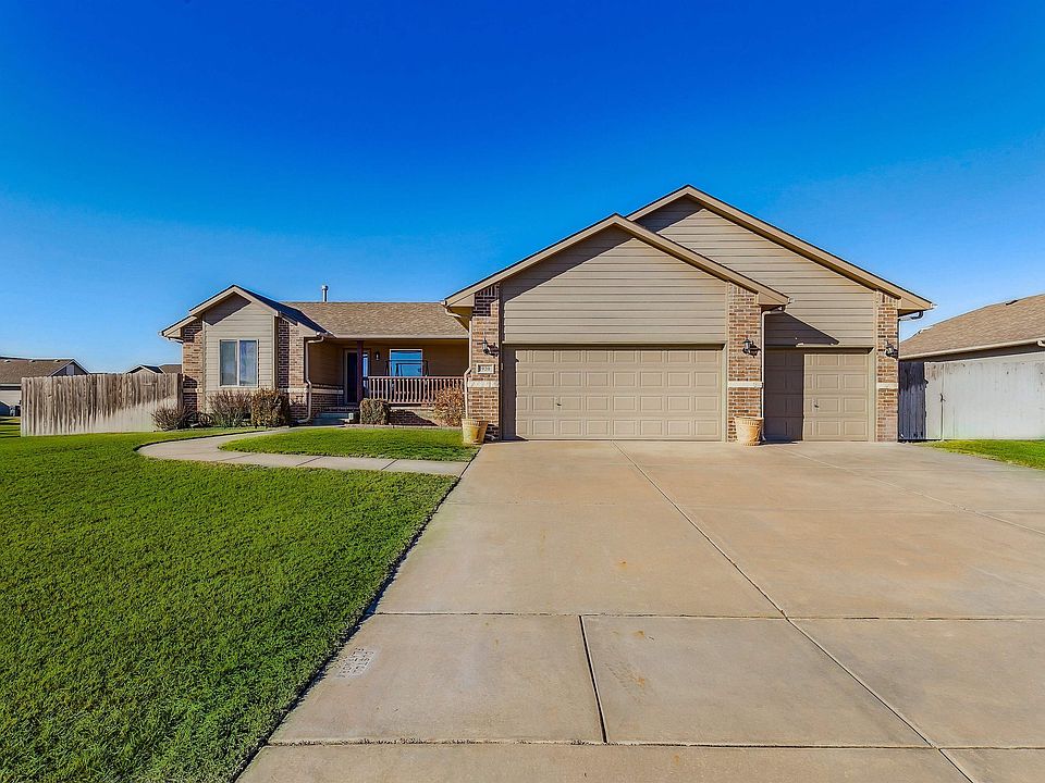 Back on the market! Welcome to your perfectly clean, move in ready, low maintenance home in St Andrews! Nestled in a cul de sac on nearly a third of an acre, this 5 bedroom, 3 bath beauty is ideally located just moments away from Kellogg in Goddard School District. The curb appeal is gorgeous with a neatly manicured lawn, stately red brick, and spacious covered front porch. Inside the appeal continues with vaulted ceilings, luxury vinyl plank flooring, and refreshing neutrally painted walls. The kitchen is a joy to live in with ample cabinet space, luminous under cabinet lighting, and convenient eating bar for 4. The master bedroom is just as welcoming with generous space, tray ceiling, large walk in closet, en suite bath complete with double sinks, and privately located with the split bedroom design. Downstairs the appeal goes on with a huge, open and spacious family room, upgraded layout with view out windows, another full bath, and two additional large bedrooms! The back yard is amazing with quality wood deck, sprawling space, tall privacy fence, lush lawn, and sprinkler system. We could go on about the money saving irrigation well and catch and release fishing in the lakes but you must see for yourself to appreciate. See you soon! Sold in current condition. Roof is insurable and has been inspected by a state licensed inspector and has 18 years of life left.