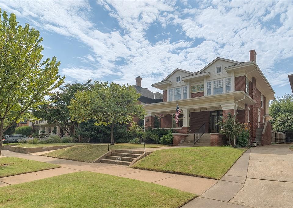 Built in 1914, this home is a stunning blend of Craftsman architecture with Victorian details, located in one of the city’s most vibrant neighborhoods. The home is situated on the original trolley route, where today, green space and tree canopies dominate the area. Encompassing 3,448 square feet, this four-bedroom, three-and-a-half-bathroom home offers period-appropriate touches paired with generous living spaces. A covered porch sets the tone for what lies beyond; inside, the Craftsman-style foyer impresses with rich wood trim and an Art Deco-era fireplace, adorned with its original green surround and pink ribbon accent tile. Coffered ceilings, stained glass windows, and wood shutters add layers of warmth throughout the main level. A tidy home office sits just beyond the dining room. The kitchen has been tastefully updated in line with the home’s original footprint. Beyond the kitchen are a pantry and a mudroom. Upstairs, the primary suite includes a custom closet, laundry room, and a renovated spa-style bathroom with dual vanities, a soaking tub, and an oversized shower. A second bedroom includes an attached sunroom, while the third bedroom is light-filled and oversized. A shared hall bath has been recently renovated. The third floor provides for a flexible use space that could be used as a bedroom, playroom, office, or game room; it is enhanced by a full bath. Downstairs, the basement offers further usable space and has previously been outfitted as a home gym. A true rarity in the historic districts, the oversized two-car garage (built in 2022) includes a 690-square-foot apartment—ideal for extended guests, income opportunities, or multi-generational living. The apartment features a bedroom, bathroom, and living space, and is prepped for a full kitchen and laundry installation. Located in Mesta Park, one can expect easy access to Midtown, Uptown, Downtown, and the Plaza District, with Wilson Elementary and Classen SAS Middle School nearby.