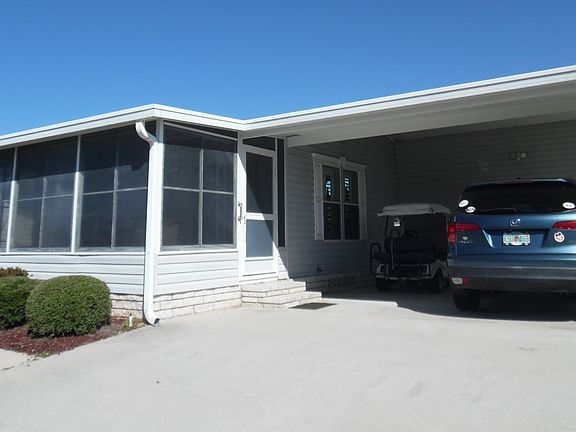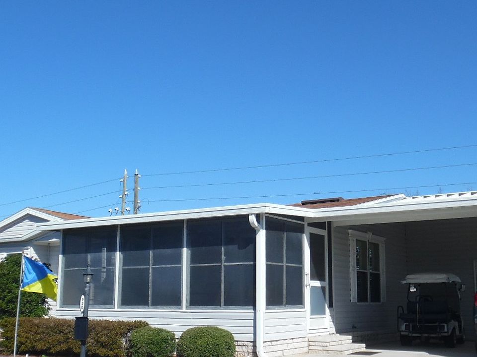 This beautiful 1664 sq. ft. home comes with plenty of upgrades and is being sold partially furnished. Two bedroom, two baths plus a den. Island kitchen makes it nice for when you have company and comes with all appliances. Separate laundry room with washer and dryer. Plantation shutters and crown molding throughout home, along with pretty vinyl flooring. Roof replaced in 2017. Front lanai with windows and ceramic tile to be able to enjoy the Florida weather year around. Double car driveway, carport and extra large shed. No rear neighbors. Come take a look at this beautiful home today!