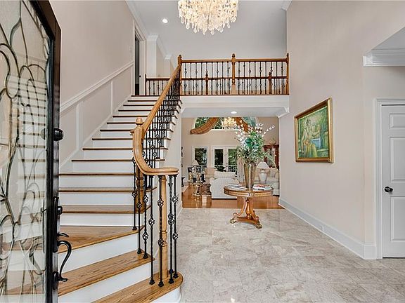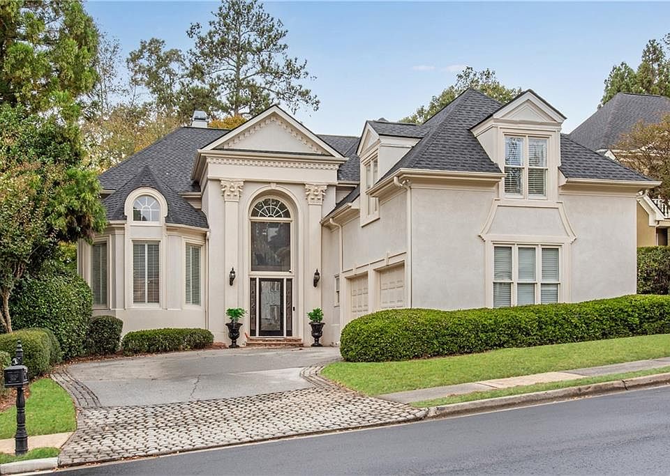 Welcome to this elegant & stunning one-owner residence located in a highly sought-after Riverfalls gated community just minutes from vibrant Downtown Roswell! Enjoy the convenience of being just minutes from local schools and having multiple routes to access GA-400, making travel simple and stress-free. From the moment you enter the grand 2-story foyer, you’ll be impressed by the craftsmanship, trim work, and built-ins you simply won’t find in today’s new construction. The updated chef’s kitchen (approx. 2 years ago) features stainless steel appliances and opens to the impressive 2-story family room with a double-sided fireplace, making it perfect for entertaining or relaxing with family. Gorgeous hardwood floors flow throughout the main level. The luxurious primary suite on the main boasts a trey ceiling, a double-sided fireplace that serves the Great Room and the Primary Bedroom, and a spa-like bathroom (remodeled approx. 3 years ago) with his & her closets. The main level also offers a guest half bath and a convenient laundry room with sink. Upstairs you’ll find 2 spacious bedrooms, 2 full baths, and a large bonus/media room with wet bar — an ideal teen suite, playroom, or additional living area. The terrace level includes a partially finished basement with bedroom, bath, office, and living spaces, plus a huge unfinished area perfect for a future home theater or gym. Step outside to the expansive deck overlooking a private setting — the perfect spot for gatherings. Newer HVAC systems for peace of mind. The community features a beautiful community pool for added amenities. Best of all, the HOA maintains the landscaping, offering a low-maintenance lifestyle in a luxury setting. Hurry, before this property is gone!