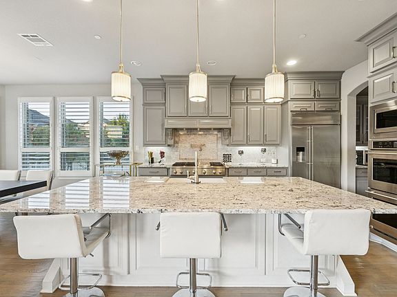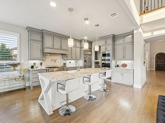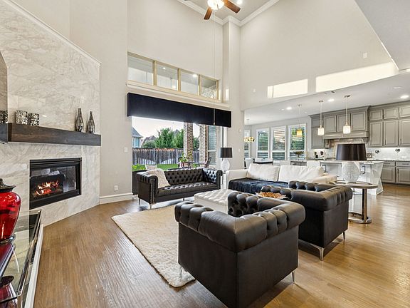 Stunning FULLY MODERN FURNISHED Home in Carillon, Southlake's premier master-planned community, known for its picturesque lakes and resort-style amenities. Ideally located near top-rated schools, dining, and shopping. This designer-inspired 5 bedroom, 5 bathroom residence with 2 powder rooms offers refined living on an oversized corner lot. Every bedroom features its own ensuite bath, ensuring privacy and comfort throughout. The home is filled with natural light, enhanced by wood floors and thoughtful designer touches at every turn. The open layout includes a gas fireplace in the living room, a dedicated office, elegant formal dining with soaring double-height ceilings, and a breakfast area off the kitchen. Upstairs, the game room with bar area and media room provide ideal spaces for entertaining and relaxation. The expansive primary suite is a true retreat with wall-to-wall windows and shutters, a spa-like bathroom, and two oversized walk-in closets. For seamless indoor-outdoor living, sliding doors disappear into the wall, opening to a generous covered patio. A split garage adds both convenience and functionality. Carillon offers a resort-style lifestyle with three lakes, a sparkling pool with pavilion, sport courts, picnic areas, playground, and miles of scenic trails. Available for Showings September 26.