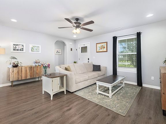 This well-maintained home offers a spacious open-concept layout with a desirable split floor plan. Throughout the home, you'll find durable and stylish vinyl plank flooring. The kitchen features an inviting island bar, upgraded black slate GE appliances, and plenty of cabinet space-perfect for everyday living and entertaining. The primary suite includes a tall double-sink vanity and generous walk-in closet for added convenience. Step outside to enjoy the 8 x 10 wood deck overlooking the large fenced backyard-ideal for relaxing or gatherings. Additional highlights include an oversized garage with an in-ground steel storm shelter for peace of mind. Located on a corner lot within walking distance to Muddy Fork Park and walking trail, this home offers comfort, safety, and convenience all in one.