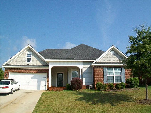 Brick Ranch with 4BR 2BA Split bedroom floor plan with a Spacious Great Room featuring 10ft ceilings and a gas log fireplace. Formal Dining Room with hardwood flooring, Kitchen with upgraded appliances and a Breakfast Area,covered back porch overlooks a large, privacy fenced, landscaped yard. Double garage and neighborhood amenities include sidewalks, clubhouse, pool, and walking trails.