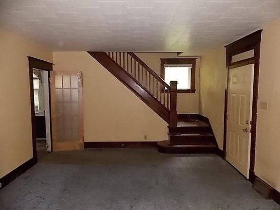 Cape Cod style home with off-street parking and a large front covered porch. New front steps . Full, unfinished basement with laundry area/ additional storage area. Decorative fireplace in the living room. Formal dining room with original woodwork and built-ins. Half bath in basement is the only bath. Upstairs bathroom is removed but could be put back into working order.