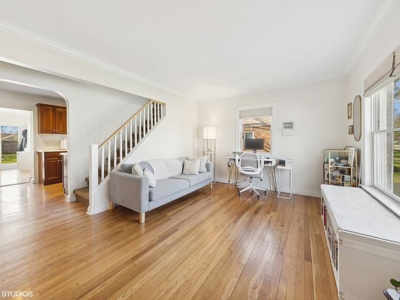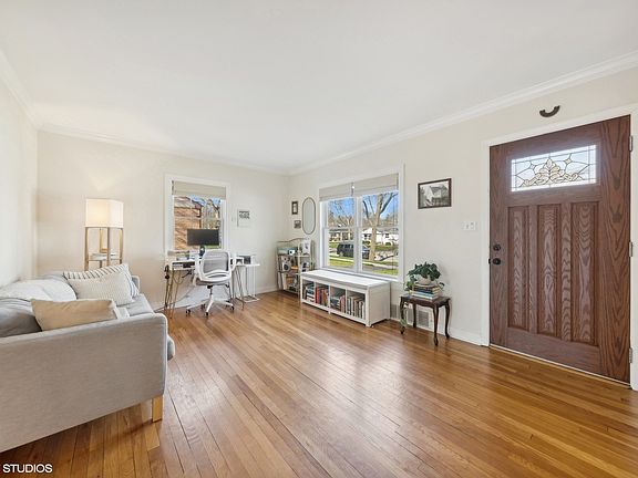 Unwind in this delightful 3-bedroom, 2-bath expanded Cape Cod nestled on a peaceful, tree-lined street in Wheaton. This captivating home is surprisingly spacious, boasting a bright addition with a sizable FIRST FLOOR bedroom and an inviting family room with access to a huge (61'x 161') fenced in backyard. Large, light-filled living spaces create a welcoming atmosphere. The luxurious full first-floor bathroom features double sinks, a separate jacuzzi tub and stand-up shower for ultimate relaxation. The open kitchen connecting to the rear family room and front living/dining room features stainless steel appliances, solid cherry cabinets, and solid surface countertops. Modern touches throughout include double-hung windows, gleaming hard wood floors, elegant crown molding and stylish interior and exterior doors. The beautiful backyard, complete with a convenient storage shed and patio awaits, perfect for summer gatherings or quiet evenings under the stars. The current owner has meticulously maintained the property, with significant upgrades completed in 2018 including a new roof, furnace and AC unit. This fantastic location offers a friendly and peaceful neighborhood, close to highly rated school district 200, vibrant downtown Wheaton, Metra commuter train station, the scenic Illinois Prairie Path, and easy access to expressways. Tour this move-in-ready home today and experience the Wheaton lifestyle, one of the most desirable western Chicago suburbs!