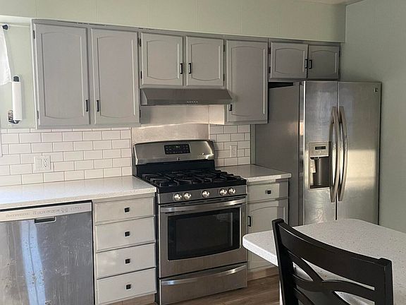 Charming 4-bedroom, 2 bath home offering 1605 sq ft. of comfortable living space. Situated on a desirable corner lot, the home boasts a bright and airy open-concept layout that seamlessly connects the living and dining areas, making it ideal for gatherings and everyday living. The heart of the home is the upgraded kitchen, featuring Corian countertops, stylish backsplash, and updated flooring throughout. There is a bedroom and bathroom conveniently located on the main level. Upstairs, you will find the second full bathroom, recently renovated with modern finishes, adding a fresh, updated touch. A new roof (2024) adds peace of mind. Step outside to a fully fenced backyard with a new patio and walkway, perfect for entertaining. The 1-car garage offers additional storage. Also, plenty of room for additional vehicles with 3 off-street parking spots. Don't miss this move-in ready gem!