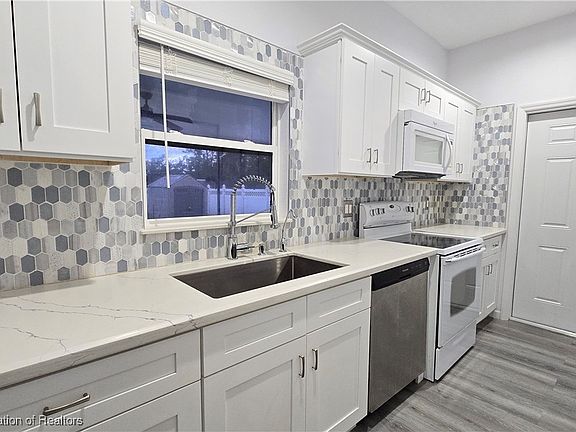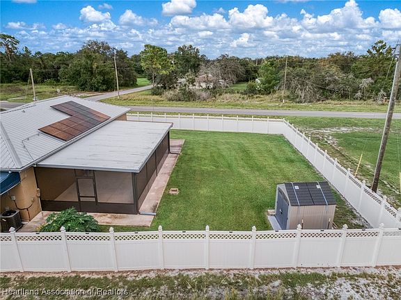 Wonderful Newer Construction Home for Sale. $1,000 Lender Credit Available. Corner lot home with large back yard & full privacy vinyl fence. The rear features a very large screened rear patio that's 34 feet long by 17 feet deep with side open porch 17'x17' as well and plenty of grass space in the rear at least 40'x75'. The interior of the home has been remarkably upgraded featuring exquisite luxury vinyl plank throughout. Every window has been thermal tinted for added efficiency and insulation. The gally kitchen overlooks the backyard and boasts elegant quartz countertops and intricate tile backsplash, RO water spigot at the sink for additional purified water. The pantry to the kitchen has custom built-in pull-out shelving for easier access to all spaces. The garage has a painted floor and functions as laundry facility as well. A tankless instant-hot electric water heater assure limitless hot water for all your needs. The three bedrooms are well sized to accommodate your desires and the primary bedroom walk-in closet also features custom built-in shelving and hanging racks for all your needs. Both bathrooms have matching materials to the kitchen and boast luxury glass enclosures, the guest bathroom is equipped with a tub while the primary bath has a low-threshold walk-in shower with bench. The side of the home through the garage side door is also completely covered with a vinyl canopy roof and fully paved adding a whole other functional space for storage, entertaining or parking a smaller vehicle pulling it through the large gate at the driveway. This home is excellent for any of your needs and will accommodate what you are looking for. This home is exquisite and boasts much to offer for a 2021 newer construction home with all upgraded components. Outside you will find many Solar Powered LED Lights lining the Driveway, Pathways, Fencing and all essential areas. Equipped with an oversized well water filtration system, you'll have the cleanest and clearest water throughout the whole home all of the time. The added Solar Panels further improve the efficiencies and maintenance costs with low power bills year long. Dont let this one slip by and Inquire Today