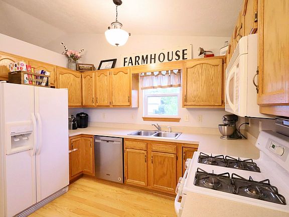 Welcome to this attractive ranch home located on a spacious corner lot. With its 3 bedrooms, 2 bathrooms, and a basement that is clean and ready for finishing, this property offers comfortable living and a warm, welcoming atmosphere. Situated on a .29-acre lot, the property boasts a beautifully fenced yard that provides privacy and a secure space for outdoor activities. Inside, you'll be greeted by the open-concept design of the main living area. The cathedral ceiling adds a sense of grandeur and airiness to the space, creating an inviting environment for both relaxation and entertainment. The living area seamlessly flows into the dining and kitchen spaces, making it easy to stay connected with family & guests. Kitchen comes complete with appliances, and the layout makes meal prep easy with everything you need within reach. Primary bedroom includes en-suite bathroom, offering convenience & privacy. It also has French doors that open to backyard patio-a great space for morning coffee or evening libations. Additional bedrooms are within close proximity to the well-appointed second bathroom. For those who value extra living space, the basement features an egress window, making it suitable for finishing and customizing to your liking. Whether you envision a home office, a gym, or an additional bedroom, the possibilities are endless. Washer and dryer stay with home. Another quality feature of this property is the attached two-car garage, providing shelter for your vehicles and additional storage space. With direct access to the house, you'll appreciate the convenience and protection this garage offers during the winter or rainy weather. The community of Goshen is known for its scenic parks, friendly atmosphere, and proximity to amenities. You'll have easy access to parks, schools, shopping, and dining options, making it an ideal location for your next home.
