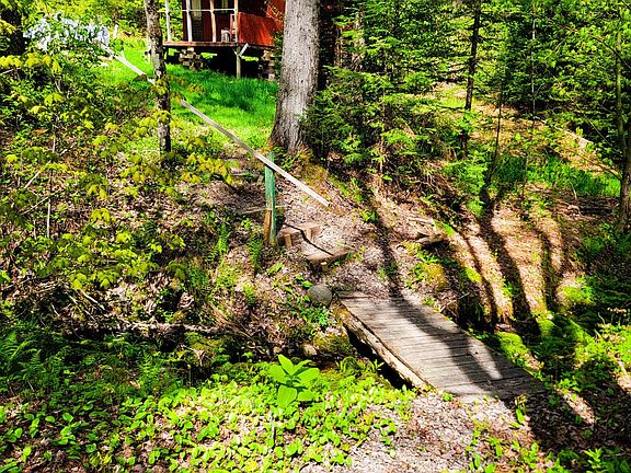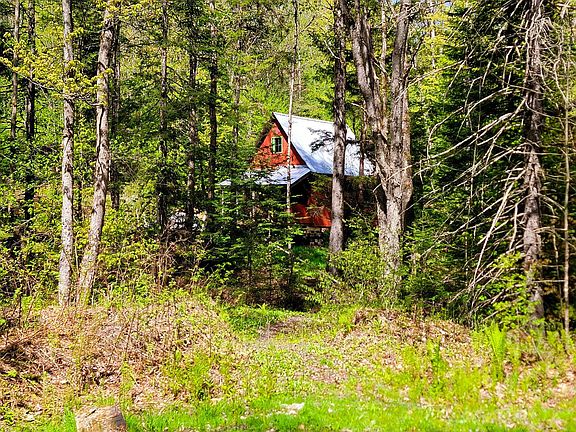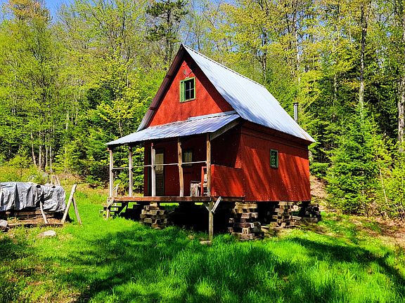 Great hunting camp or summer get-a-way on 30 +/- wooded acres in the quiet town of Wolcott, VT. Accessed on a Class IV seasonal & unmaintained road, this simple off-grid camp comes furnished & features a propane range, propane lighting & a wood stove. There is a nice parking area for 3 – 4 cars off the road & a small bridge over a seasonal stream that leads to the existing cabin. A ladder from the first floor leads to a large, open loft area for sleeping. The cabin walls are not insulated but the second-floor ceiling is. There is about 1/3rd of an acre of cleared land around the camp; it is sloped but usable. There is no running water in the cabin. A traditional outhouse is nearby for nature’s call. Used primarily for a white tail hunting camp by the sellers, there are some trails but the land is heavily wooded. Enjoy the front porch, walk the woods, hunt, shoot, hike & enjoy what Vermont has to offer. The sellers state the road is normally open until after hunting season & is used by snowmobilers in the winter as a cut through to main trails. Power is over 4000’ away on the small Class III section of Turcotte Road. The property is being sold as a seasonal camp only, not a residence. There is no power, water or septic, and the camp is uninsulated & built on wood block piers. Land enrolled in the Current Use tax reduction program with 2 acres left out around the cabin. The road is rough but drivable by truck; this is last camp on the road. 4-wheel drive suggested for access.
