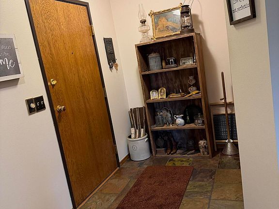 This well-kept 2 bedroom 2 bathroom condo offers a warm and homey feel with a layout that makes the most of every space. The large primary suite includes its own private bathroom and plenty of room to unwind. The kitchen features granite countertops, ceramic tile flooring, and stainless steel appliances that stay with the home. A dedicated office with a built-in bookcase and fireplace adds comfort. One of the bedrooms includes built ins plus a second closet for added storage. The finished two-stall garage is tiled and outfitted with built-in cabinetry, counter space, and a tiled backsplash-ideal for entertaining, hobbies, projects, or relaxing. A cedar-lined storage room adds even more utility. A newer patio door leads to your private deck, perfect for enjoying quiet mornings or evening sunsets. The $300/month HOA fee covers water, sewer, and garbage, snow removal, and lawn care, plus exterior maintenance on the building. A new elevator and very nice commons area. This condo is IMMACULATE throughout and truly feels like home!
