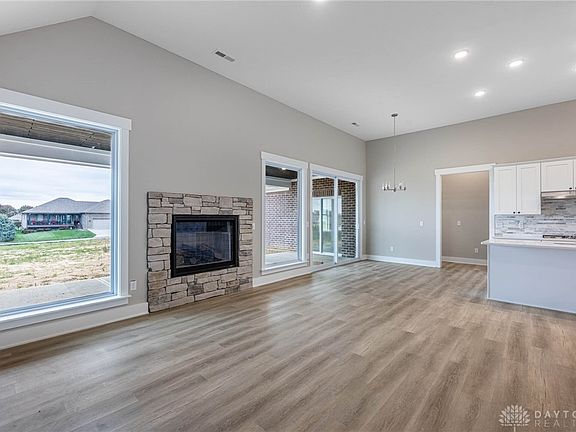 Exciting new Craftsmen offering in Xenia's popular Wright Cycle Estates neighborhood! Designed for today's particular purchaser, this model offers a stunning Great Room / Kitchen / Dining Area combination featuring 12-foot soaring ceilings, popular LVP flooring, and an oversized gas, stone-wrapped fireplace flanked by oversized windows and a MASSIVE sliding-glass door - literally bringing outdoor views inside! The gourmet kitchen features high-end, 42" cabinetry with soft-close doors and drawers, quartz countertops, custom-tiled backsplash and stainless appliances (five-burner gas cooktop, wall oven & microwave, dishwasher and refrigerator)! The Primary Bedroom, separated from the guest rooms, offers a 12' tray ceiling, and sliding glass patio door. The ensuite bath includes a dual-basin quartz vanity, custom-tiled plate-glass shower, private commode room and an attached walk-in closet with convenient adjacent access to the laundry room! A finished three-car garage leads into a beautiful, but poorly named mud room featuring a built-in "boot bench", coat closet and the adjacent kitchen's walk-in pantry! Though beautiful throughout, my personal favorite spot by far is the north-facing 26x10 covered rear patio with a striking tongue-in-groove ceiling treatment. The extra-deep lot provides nice separation from the homes to the rear. Two guest rooms share a full bath with separated vanity from commode / shower combo. Additional amenities include: Gorgeous front elevation ~ Premium garage doors ~ Hardie trim ~ Full-width driveway ~ 95% efficient gas furnace ~ Mission-style trim package ~ Deep tub ~ Built-in shoe tree ~ Fully sodden yard. This home is NEARLY COMPLETE and ready for you to make it "home".