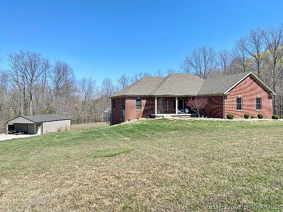 QUALITY, COMFORT, & STYLE! One-owner custom brick ranch designed & built by Nick Romeo Builders in 2012! Situated on 3.386 acres in a pristine, convenient location just north of Georgetown & only mins from I-64-Exit 118! Stylish layout & use of quality materials offers comfortability & social appeal, perfect for exclusive daily living & entertaining family & friends! Surrounded by elegant homes & park-like views! Int. features: open layout living room & eat-in kitchen; hardwood flooring; kitchen island w/breakfast bar & sink; double oven w/range; walkout to brightly lit sunroom w/ceiling fan; lavish master bedroom; huge walk-in closet leads to utility room; two secondary bedrooms & full bath on main floor; full walkout basement (partially finished w/9’ ceilings) includes an additional full bath, LOTS of storage, drop ceiling, & some cabinets; 2-car attached garage. Ext. features: red brick; poured concrete foundation; asphalt-shingled roof; covered concrete front porch; rear concrete porch-length of home; large upper rear walkout deck; concrete driveway; concrete sidewalks! Like-new geothermal heat & central air & dual water heaters; 400 amp electric service; water softener system. ALSO a 30x40 metal-sided shop w/10’ lean-to, 8’ front porch, & gravel drive. Landscaped lot is open & spacious w/firepit. Plenty of room for outdoor projects & fun! Possession at closing! Move-in ready! Bid now at https://bid.beckortauctions.com/auctions/catalog/id/35757/