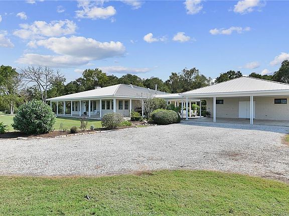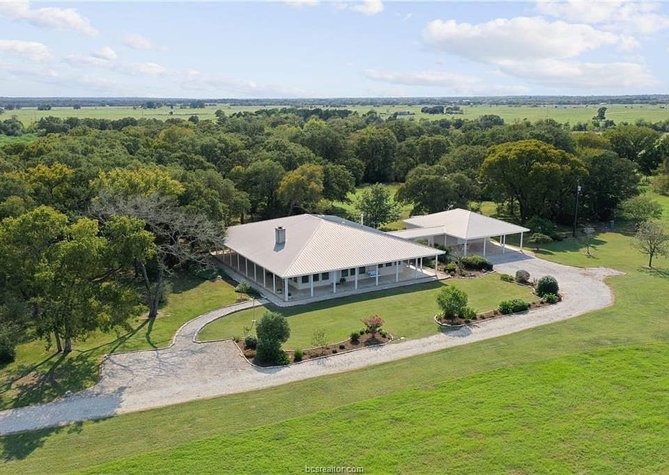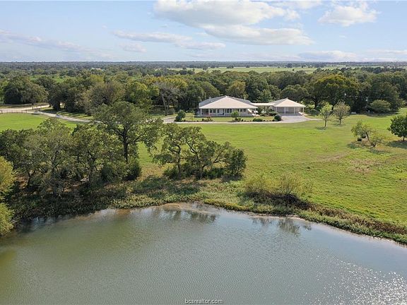 Timeless Country Estate only minutes from B/CS! Situated overlooking a tranquil 1800s era lake, this property is positioned adjacent to one of the largest remaining land tracts in Brazos County and hosts a crisply designed ranch house. The residence is comprised of 2 large master bedrooms both with en-suite baths, 2 office spaces, stately library and an open central living/dining/kitchen. Living room with full masonry fireplace, open beam celling dining area, kitchen with extensive counter space and cabinetry. Butlers pantry, 1/2 bath, ample storage, a workroom/pet shower, attached 3-car carport & workshop perfect for future casita. 1200+ sq ft metal building. 18+ additional acres available.