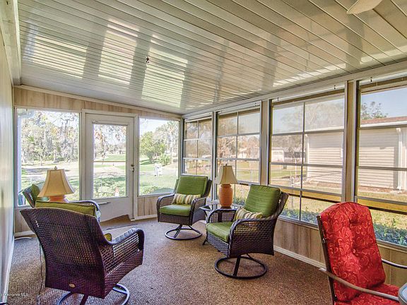 A GOLFERS GEM!! GOLF CART INCLUDED!! Come see this beautifully furnished 2/2 GOLF COURSE HOME and soak in the view of from RIGHT BEHIND THE #9 TEE from your LARGE FLORIDA ROOM. Large Island Kitchen. 2nd Florida room under carport. Large utility room with golf cart door. FENCED BACK YARD!! New A/C 2008. Located in the popular High Point Community--55+ golf community where you own your own land. Major medical services, restaurants, and shopping are just very close by.