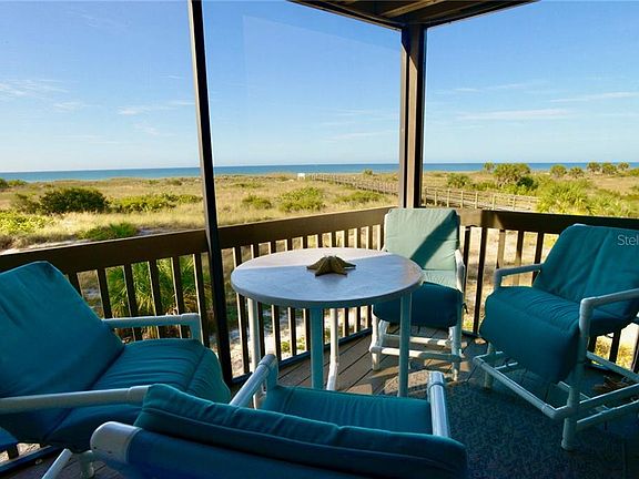 When the grass grows, the leaves fall and the SNOW PILES UP, you will appreciate this lifestyle you have worked for, and Little Gasparilla Island is much more than just a place to live. Here is your opportunity to enter into the carefree world of fun and leisure, with all the amenities of a fine single family residence with none of the responsibilities. Walk the uncrowded 7 miles of beach, fish the famous Boca Grande waters for Tarpon or travel the world knowing that maintenance will be taken care of on your BEACH FRONT 2 bedroom, 2 bath condominium. Two large screened-in lanai's offer constant enjoyment of the GULF WATERS and breathtaking views and ever changing sunsets. With nearly 800 square feet, you find plenty of room to use as your full-time residence or as an income generating rental. One never tires of looking directly out onto the GULF OF MEXICO! This small island complex consisting of only 30 units, offers you a heated pool, clubhouse, boat dockage and PRIVATE FERRY transportation to and from the island. In addition, you will enjoy the numerous amenities offered throughout the mainland facility of the Placida Harbour Club. This secure gated community offers COUNTRY CLUB STYLE AMENITIES to include mainland parking, 2 large heated pools, tennis courts, pickle ball courts, fitness center, spa/hot tub and a magnificent Club House that holds many events and activities. Placida Beach Club, on an island with no public docks or access, is one of the last remaining BEACH FRONT properties available in southwest Florida! A MILLION DOLLAR VIEW at an affordable price point. Call on us for no-cost transportation to Little Gasparilla Island and your private tour of this gorgeous beach front property.