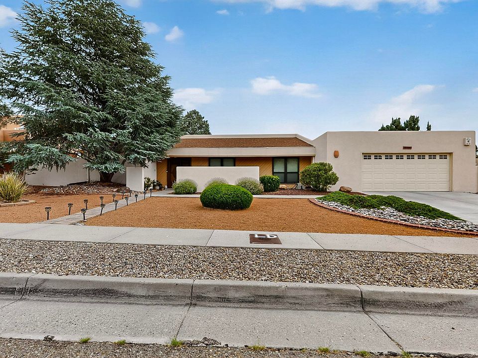Such a nice place to come home to! Gracious, roomy home on a peaceful street in the beautiful Academy Estates East neighborhood. a perfect Northeast Heights location! Centrally located near shopping, restaurants, parks, and biking/walking trails, but the right distance from the noise of major streets. Relax and entertain by the sparkling pool in the huge, low maintenance backyard, or enjoy a quiet conversation in the large gazebo. Primary suite and large secondary bedrooms are at opposite ends of the home for privacy and quiet. Two large living areas and a stone fireplace add to the quiet enjoyment and entertainment possibilities. Come see this beautiful, comfortable home!