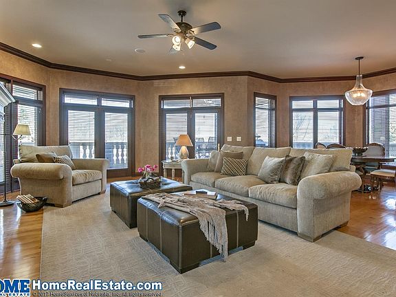A modern treasure of timeless style & sophistication. Welcome to this all brick beauty in the heart of Firethorn. A soaring entry with panoramic views of Lincoln's most premier and private golf course. Travertine marble & beautiful wood floors grace the main level: an expansive great room, living room, custom kitchen, formal dining room & a cozy den with a double sided fireplace. A beautiful balance of light & landscape provides the perfect oasis for the master suite equipped with his/hers closets, marble vanities & a whirlpool tub. Upstairs hosts 3 large bedrooms, each with their own exclusive bath. Walkout basement with wet bar, living room + rec room, exercise room, additional bed and a plush office space with custom built-ins. Only found in a home of this caliber... 2 private balconies, stamped concrete patio & a tremendous deck with a waterfall & fireplace.