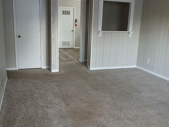 Nice and bright white kitchen with fresh vinyl plank flooring and carpeting in bedrooms!
