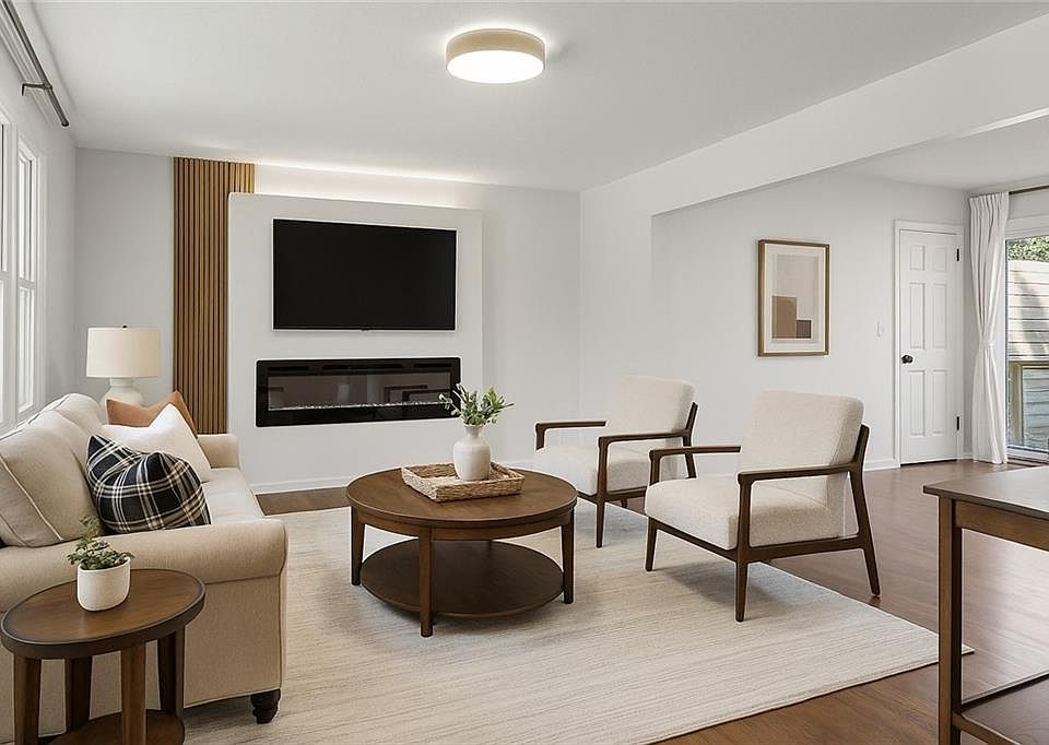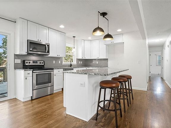 Welcome to this beautifully updated raised ranch in the highly sought Cherokee Hills neighborhood. This home offers approximately 1,600 sq ft of living space with an open floor plan, perfect for modern family living. The spacious main level features wood floors throughout, a large kitchen island, and granite countertops that anchor the cooking space with stainless steel appliances. The family room has a new contemporary hearth with a fireplace and perfect space for tv. Nicely equipped with mood lighting. With 3 bedrooms and 2 1/2 nicely updated bathrooms, the layout is both practical and inviting. Downstairs, the finished basement expands your living options with new carpet, a contemporary wood-burning fireplace in the family room, and generous space for media, play, or relaxing. Step outside to enjoy the large deck off the back, opening to a fenced backyard — ideal for entertaining, children, or pets.
