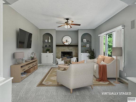 - Features: Wall/Wall Carpeting, Window Covering, Fireplace, 9'+ Ceiling, Ceiling Fan(s)