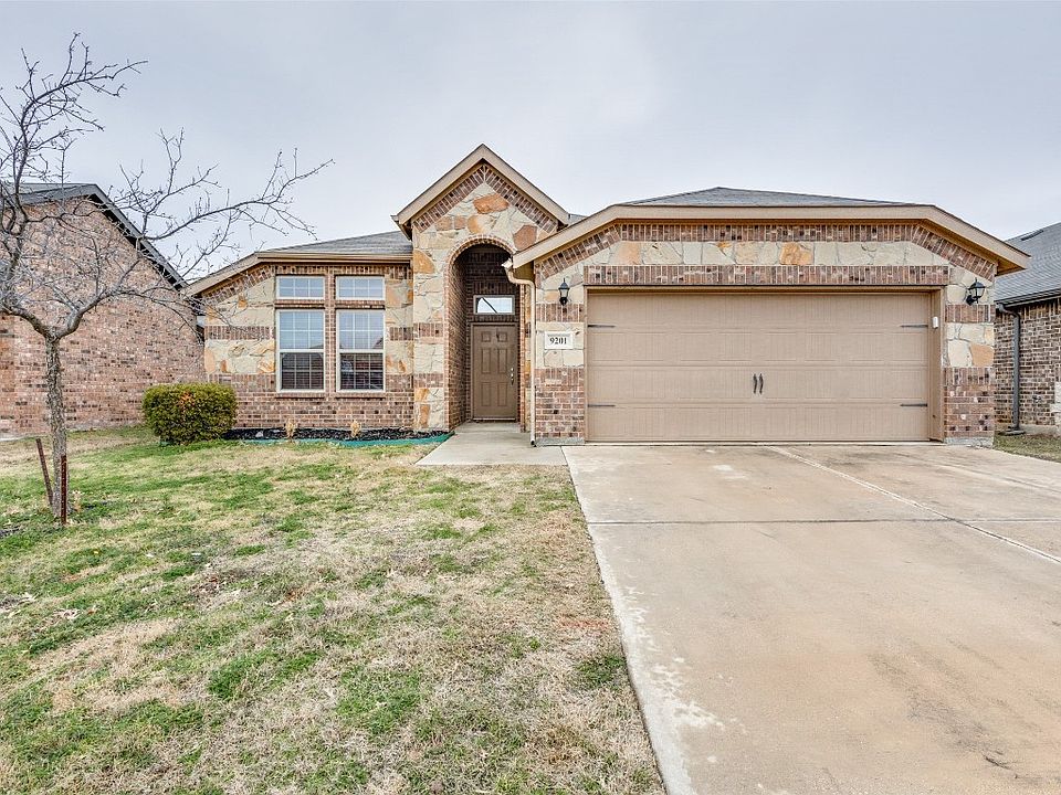 This Adorable Home in Fort Worth awaits you! Walk across the street to the elementary school! This home offers Stone accents, 10 ft. ceilings, lots of cabinets, SS appliances, a Covered Back Patio, and a full Sprinkler System in the front and back yard. This spacious open-concept floor plan offers a large primary bedroom with an ensuite bath separately located from two other secondary bedrooms. The primary bathroom also includes dual sinks, a separate shower, and a large garden tub that is perfect for soaking. The Open Concept Kitchen overlooks the living and dining rooms making it perfect for family time and socializing with friends. Come see this lovely home now and make it your own!