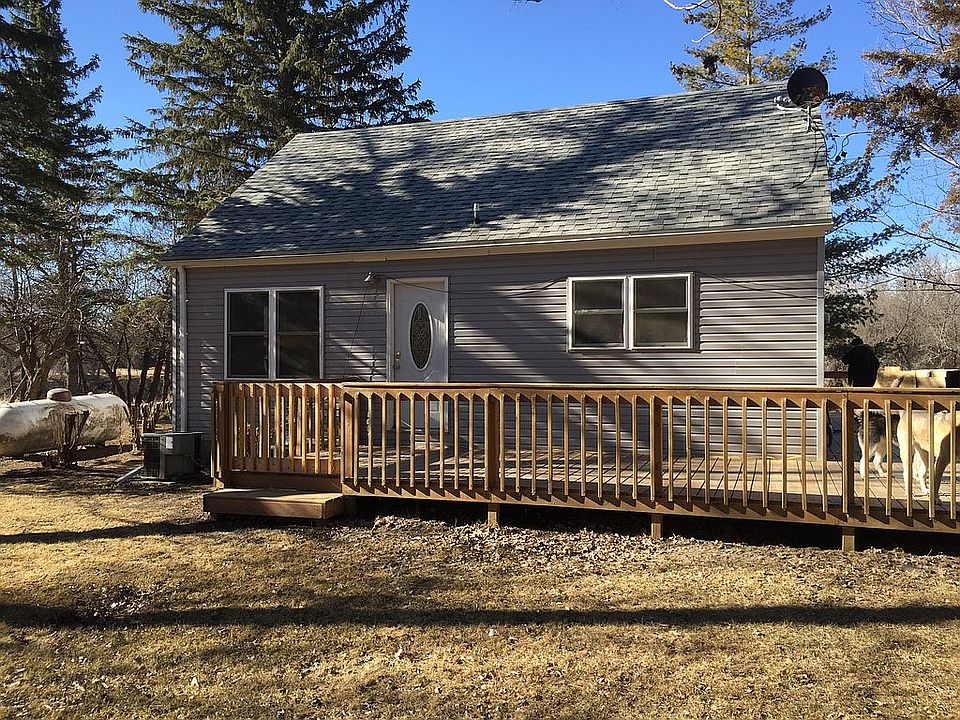 This beautiful, 2 bedroom, 1,100 square foot home has been recently remodeled inside and out. roof, furnace, etc. The basement is partially finished with a non-egress 3rd bedroom. It has a huge deck and sits on 3.5 acres with river on the edge of property,(did not flood in 2011).The kitchen features medallion cabinets, recessed lighting, and dura-ceramic tile. Hardwoods throughout the rest of the home.