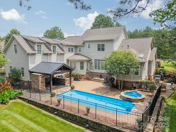 WATCH VIDEO TOUR! Welcome to this one of a kind home filled with luxurious charm both inside and out. Outdoor living is an entertainers dream in this home w/ professional landscaping, heated pool, hot tub, outdoor living area w/ fireplace, outdoor bar area, spacious patio & private, gated, fenced back yard on over a 1 acre private lot! This custom home envelopes you with privacy while still being close to Mint Hill and I-485. Unique features include main level primary bedroom w/ California closets, spa-like ensuite & private sitting area w/ walk-out to patio, a chef's dream kitchen w/ state of the art S.S appliances, & a 3-car garage + gated driveway for parking. Hardwood floors flow throughout main living areas & upstairs you'll find 3 guest rooms each w/ their own full bath. The diamonds are in the details with this home and those include an in-ground irrigation system, smart light switches, central vac, coffered family room ceiling, plantation shutters and so much more.