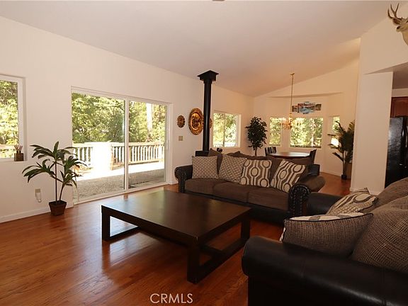 What a stunning home! Pine Summit Estates is one of the most desirable neighborhoods in Lake County and this property has everything you could wish for in an upscale residence. Warm toned inlaid hard wood floors, soaring cathedral ceilings, a propane fireplace AND a wood burning stove are just a few of the noteworthy features that greet you as you walk through the front door. Host dinner parties in the light filled dining nook complete with bay windows that accentuate the unspoiled natural views. Banks of sliding glass doors service one entire side of the building allowing outdoor access from both the living area and master bedroom. The well-appointed kitchen is a chef’s delight and showcases cherry wood cabinets, granite counters, under cabinet lighting, a window herb garden and a center island five burner cooktop with pop up vent. Two 3500 gallon water tanks for fire suppression, a concrete deck and well maintained defensible space all add to the safety of the property. Nestled among towering pines but with plenty of sun for fruit bearing trees and gardens to thrive. A three car garage provides lots of space to protect your investments and has abundant storage to boot. A short five minute drive to an award winning elementary school, Boggs State Forest, a community swimming pool, two golf courses and all the practical amenities you could wish for. Most of all you are assured of the tranquility, natural beauty, clean air and superlative environment that Cobb has to offer. Come live the life you’ve been dreaming of!