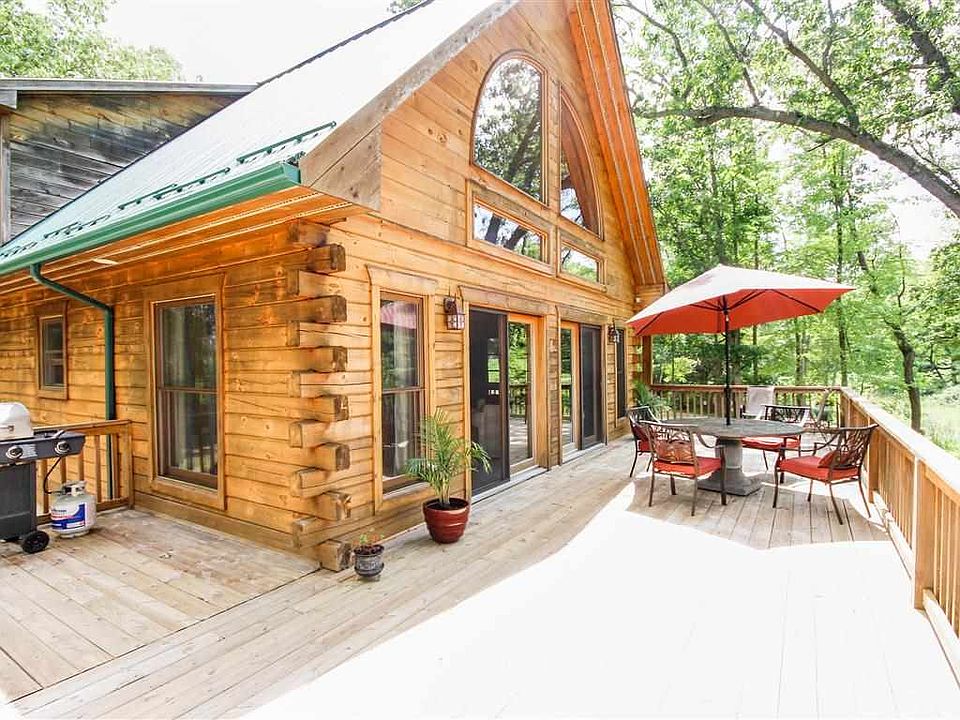Enjoy the peace and serenity of country living in this beautiful pine log home. Sitting on just over three acres of secluded land, where the loudest noise is the sound of frogs chirping. This is the first time this home has been on the market, which is surrounded by family owned land. Open concept living, dining and kitchen areas, provide panoramic viewing of the gorgeous setting. Three bedrooms, two baths, and a wraparound deck are just a few of the amenities that this home has to offer. Arched windows projected from the bonus loft area allows for an abundance of natural lighting, while the finished walkout basement welcomes the creativity of its new owner.
