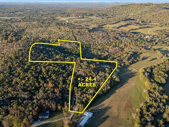 43 miles from BNA is a private 2300' grass airstrip that is 1/3 owned by the owner of this home. Bring your airplane(s) and desire for the privacy of the rolling hills of middle Tennessee! Custom log home was built in 1999, the detached 26x60 garage added in 2005 (with 1500 sqft of unfinished storage), followed by the private 40x90 hangar in 2006. Log home features include an 8' wrap-around porch, expansive great room with 24' peak ceiling showcasing the view to south, 3 bedrooms on the main level, and plenty of entertaining space in the loft area. Total acreage of 24+ acres includes wooded tract to the northwest (see pictures). Add your personal touches to make your private airstrip dreams a reality.