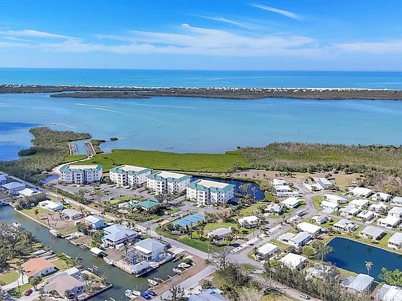 Discover vibrant coastal luxury in this stunning, fully reimagined 3-bedroom, 2.5-bath end-unit condo, built in 2003 and perched along the breathtaking Gulf Intracoastal Waterway. Relish jaw-dropping sunsets and the parade of boats from your expansive screened lanai, where dolphins dance and the waterway flows unobstructed to the Gulf of America via Stump Pass—no bridges in sight. This meticulously renovated retreat blends modern elegance with laid-back coastal charm, designed for both serene relaxation and lively entertaining. Step inside to sleek porcelain tile floors and an open-concept kitchen that’s a chef’s dream, featuring top-tier stainless-steel appliances, shimmering quartz countertops, chic modern cabinetry, and a sprawling walk-in pantry. The farmhouse sink, complete with a cutting board, drying rack, and disposal, makes meal prep a breeze. The primary suite is your personal oasis, with tranquil bay views, a massive walk-in closet, and direct lanai access. Its spa-inspired en-suite bathroom dazzles with a Bluetooth-enabled walk-in shower, rain head, marble bench, dual quartz-topped sinks, and a linen closet for effortless organization. The smart split floor plan ensures privacy, with a guest wing offering two cozy bedrooms and a full bathroom, plus a versatile bonus den perfect as a home office or flex space. Fresh paint, stylish new lighting, fans, doors, and trim elevate the modern vibe, while a chic half bath keeps guests comfortable. Nestled in a gated community, indulge in resort-style perks: a heated pool and spa, a fitness-packed clubhouse, scenic nature trails, tennis and pickleball courts, a grill area, a private fishing pier, and a 38-slip marina with boat slips available for purchase or lease (ask for details). Enjoy ground-floor convenience with two private parking spaces and locked storage cages for your beach gear, plus spacious elevators for easy access. Just minutes from pristine Gulf beaches, dive into fishing, boating, kayaking, or swimming, with vibrant dining, live music, and entertainment at your doorstep. Conveniently located 15 minutes from Boca Grande, 40 minutes from Punta Gorda Regional Airport, and 60 minutes from Sarasota International Airport, this coastal gem offers the ultimate blend of tranquility and adventure. Don’t miss out—schedule your private tour today and make this slice of paradise yours!