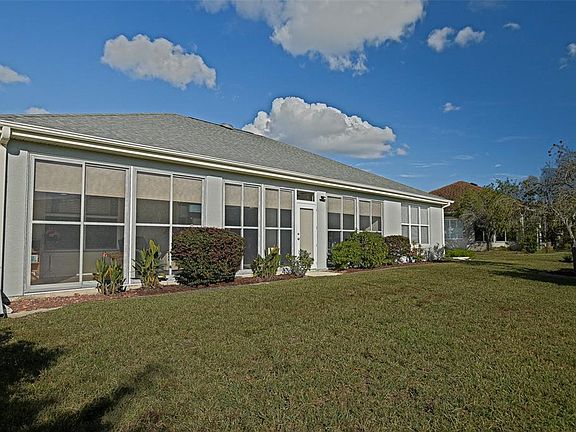 Beautiful Granville model located in Echo Glen situated just a couple blocks from the Horizon Center (clubhouse). The home features great “curb appeal”. This non-smoking, non-pet home features a spacious split bedroom plan, den/library and a versatile bonus room, perfect for an office or extra storage. This home offers an impressive 40 x 10 enclosed lanai that can be heated and cooled or closed off as desired—ideal for year-round enjoyment, for quiet moments or great for entertainment. Luxury vinyl plank flooring flows seamlessly throughout the entire home (no carpet) with 6 in. custom baseboards, including the closets. The large eat-in kitchen features under cabinet and above cabinet lighting, surrounding the custom 36” extra long wood cabinets with pull out shelving, ample cabinets and counter space plus an island. New stainless-steel dishwasher, microwave, and refrigerator just installed, and a less than one year old range. Roof was re-shingled in 2021. Home exterior and interior were re-painted in 2022. Enjoy the formal living and dining room plus the cozy library/den and welcoming foyer. To round out all the upgrade there are extra electrical outlets and dimmer switches plus speed chargers. The exterior features rock beds with cement curbing around the home. An extended garage with a golf cart storage area or space for a workshop and for added convenience and protection, the garage has a whole house water shut off valve. Centrally located in the community and close to every amenity this community has available for your enjoyment. A truly comfortable and well-appointed home with thoughtful details throughout!