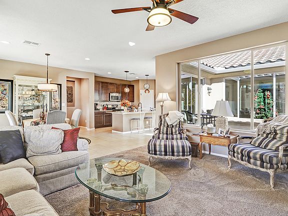 Located in Mirehaven, Del Webb's exclusive 55+ active adult community. This Haven Floorplan boasts foyer entrance into this wonderful light filled home. The centrally located custom kitchen is the hub of the home with a large island bar. Glass door opens to a private patio with fountain. Relax this winter in front of the gas fireplace in the liv area. Flex room perfect for home office or den. The primary bedroom with private bath offers large walk in shower dual vanities and oversized walk in closet. Glass doors from dining room to covered patio and professionally landscaped backyard. Large service room offers ample counter and cabinets. Washer and dryer convey. Amenity center includes pool hot tub full gym pickleball tennis bocce over 40 activities and more. Not just a home a lifestyle!