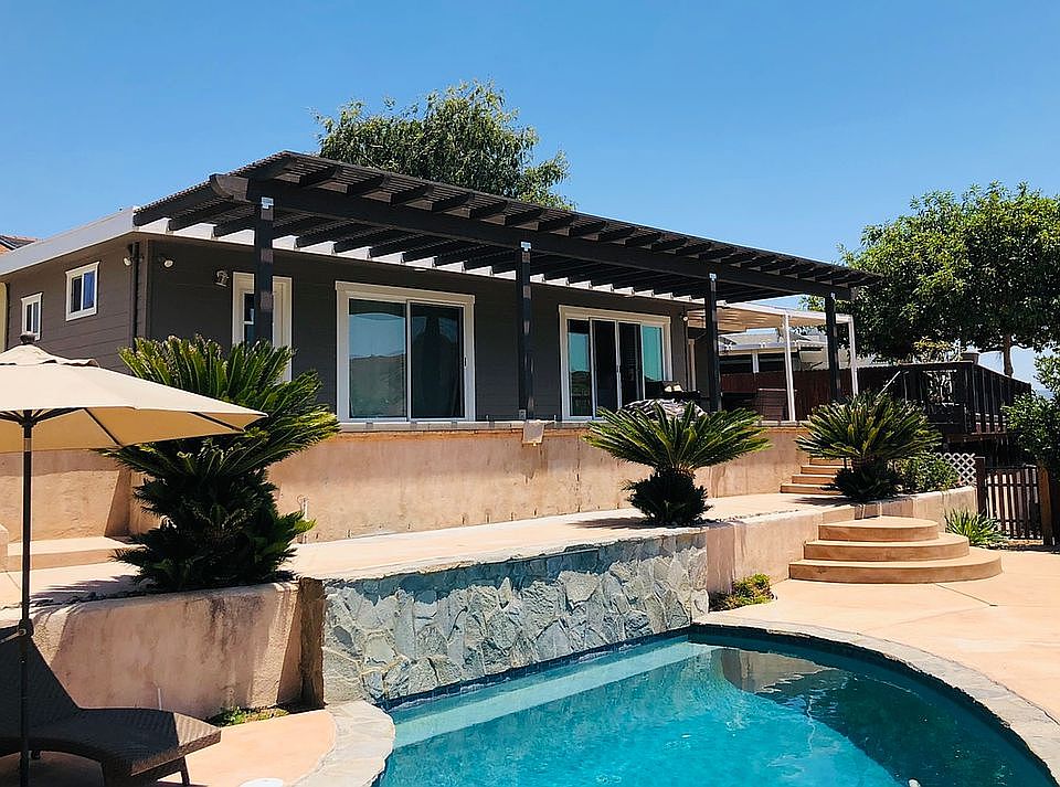 Beautiful 3Bed/3bath plus office, ranch style home. Remodeled by contractor and designer homeowners. Custom cabinetry throughout, all Viking appliances, vinyl flooring, walk-in closet in the master, new. High efficiency heat/air system, and a whole house fan. Gorgeous views of the Santee Lakes! 3 beautiful outdoor dining and lounging areas. Large yard with solar heated pool and jacuzzi, 100 Sf shed and RV parking! Solar paid for and on its way!